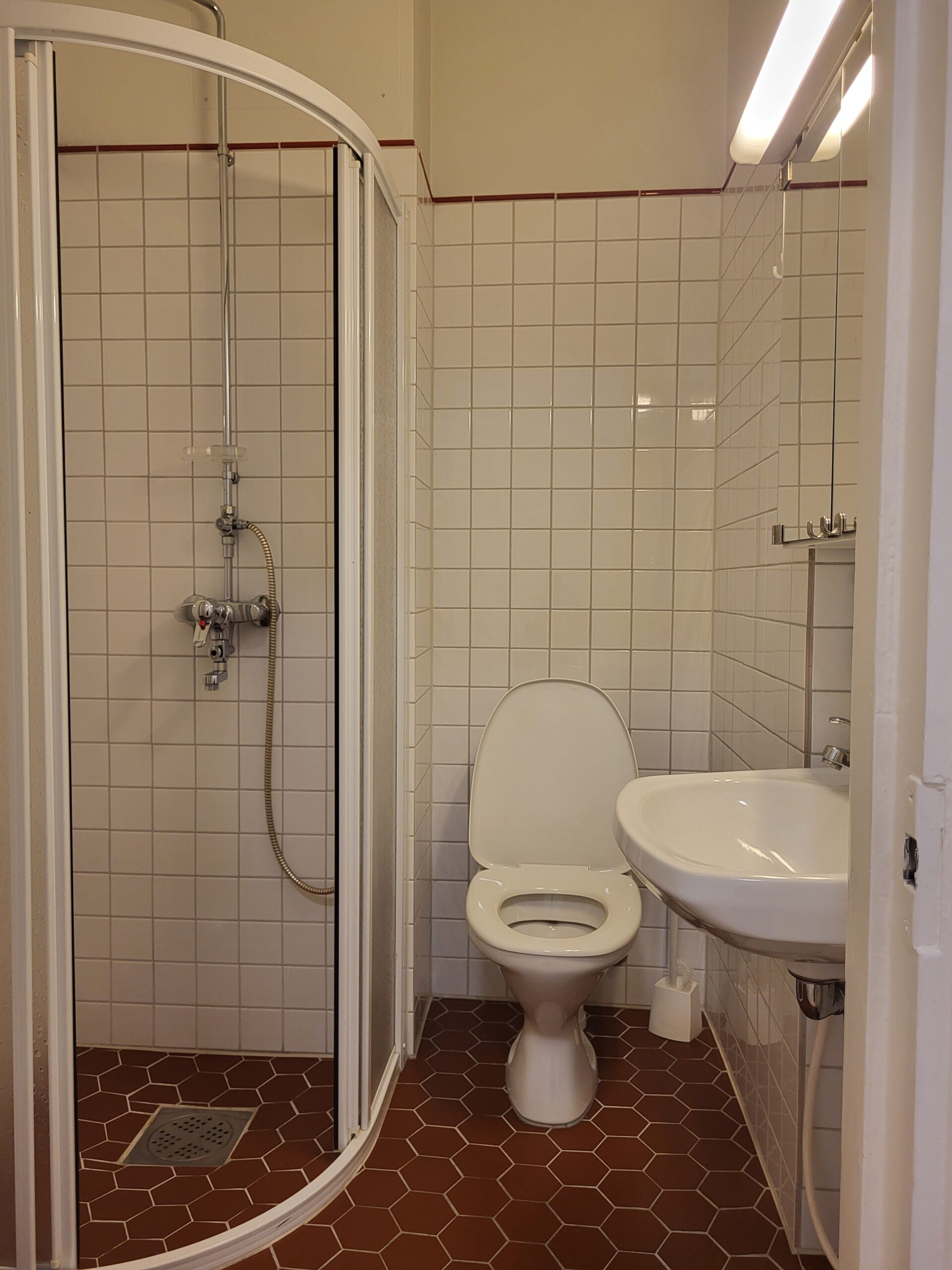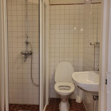 - Varustelu Keittiössä jenkkikaappi. Huom! Keittiöön ei voi asentaa astianpesukonetta. Kylpyhuoneessa suihku, pesuallas, peilikaappi.
