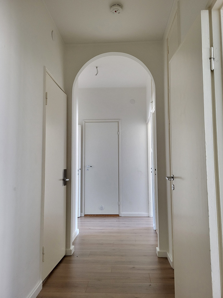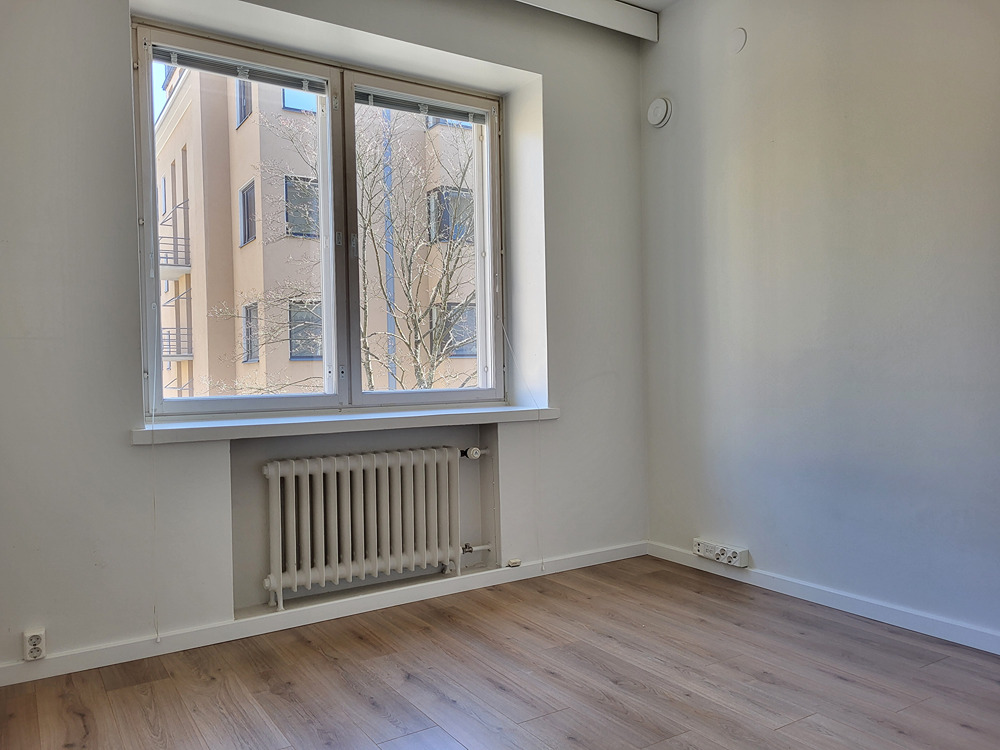 Läpitalon kolmio Taka-Töölössä. Olohuoneen ikkunasta näkymät Linnankosken puistoon, makuuhuoneista ja keittiöstä rauhallisen sisäpihan puolelle. Huoneistossa on hyvin säilytystilaa tilavan vaatehuoneen ansiosta. Kylpyhuoneessa on tilavaraus pesukoneelle ja lisäksi taloyhtiössä pesutupa kuivaushuoneineen.