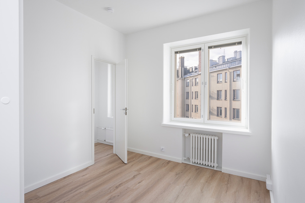 Hyväpohjainen kaksio peruskorjatusta kiinteistöstä Taka-Töölöstä. Huoneistossa makuuhuone, keittiö, olohuone, kylpyhuone ja 2 pientä vaatehuonetta. Keittiössä on tilaa pienelle ruokapöydälle, varusteina keraaminen liesi, astianpesukone, jääkaappi-pakastin ja mikro. Makuuhuoneen yhteydessä pieni ikkunallinen vaatekomero, lisäksi isompi vaatehuone eteisen yhteydessä. Kylpyhuoneessa suihku, pesuallas, allaslaatikosto, peilikaappi, pyyhekuivain ja tilavaraus pesukoneelle.
